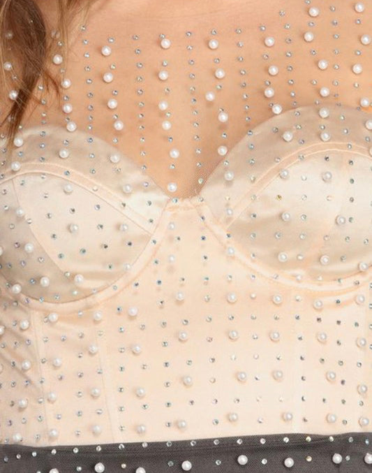 Women's Mesh Top with Rhinestones and Pearls: Embrace the Chic Design for Every Occasion